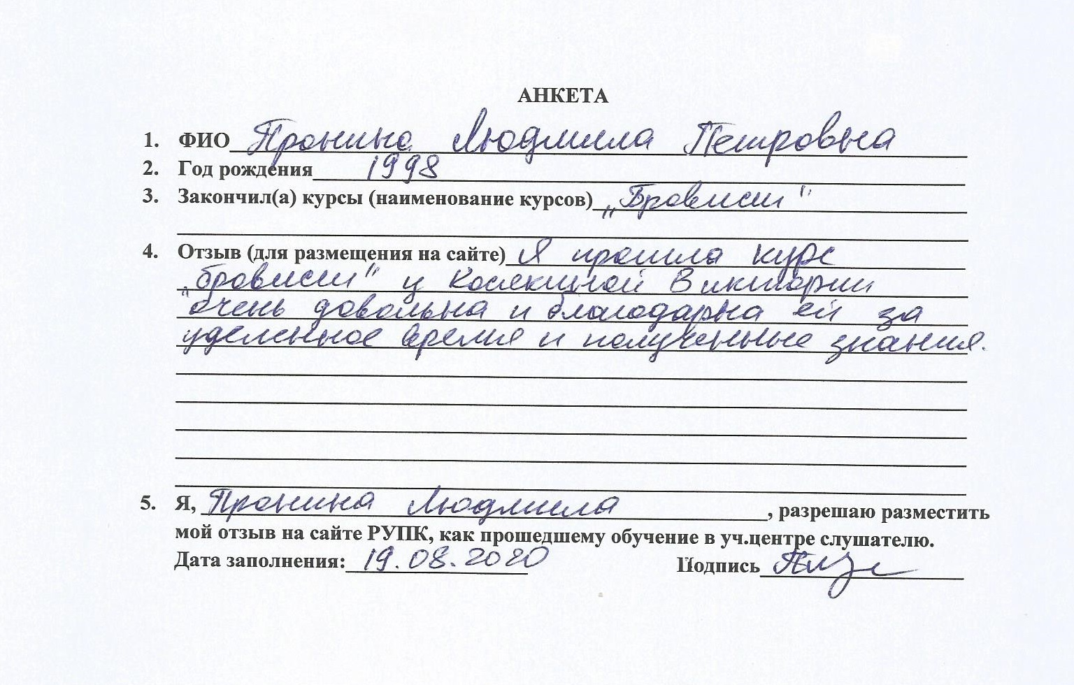 Я прошла курс «Бровист» у Косякиной Виктории, очень довольна и благодарна ей за уделенное время и полученные знания.